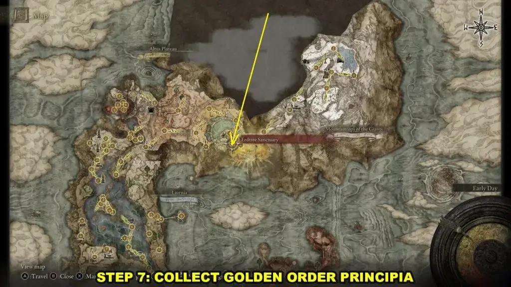 이제 Golden Order Principia 를 수집해야 합니다 . Erdtree Sanctuary 에서 오는 길은 아래 그림과 같이 보여드리겠습니다.