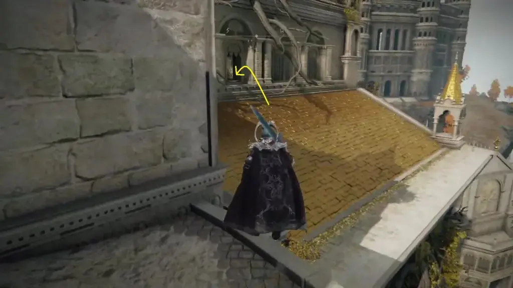 루트를 위로 올라갑니다. 그런 다음 문을 통해 나가서 왼쪽으로 도십시오. 아래 그림과 같이 지붕 위로 점프하여 창을 통해 올라갑니다.