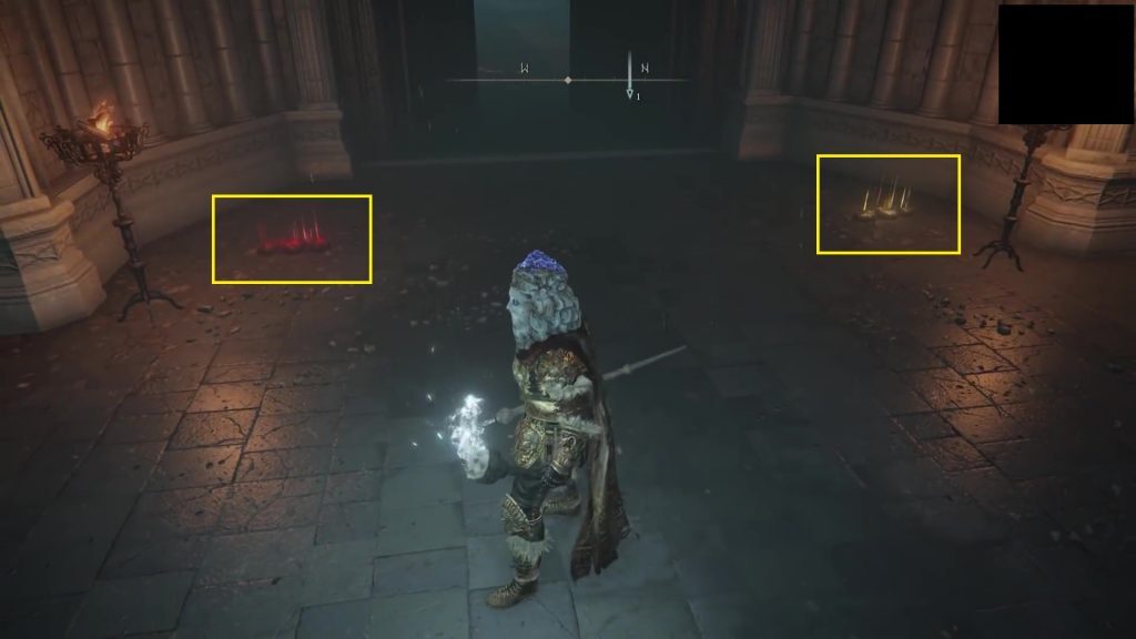 이 폐허는 아래 사진과 같은 지점에 환상의 바닥이 있습니다. 이 지점을 누르면 바닥이 사라지고 지하로 통하는 경로가 나타납니다.