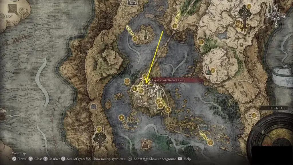 많은 플레이어들이 아주르를 찾기가 어렵다고 하니 찾아가는 길을 설명해 드리겠습니다. Dectus 의 그랜드 리프트를 사용하여 Altus Plateau 로 들어갑니다 . 거기에서 북쪽으로 이동하면 아래와 같이 은총의 Erdtree Grazing Hill Site of Grace에 도달합니다. 그곳에서 북동쪽 방향으로 오르막길을 오른다. 그런 다음 서쪽으로 이동하여 아래에 표시된 Seewater River Site of Grace에 도달합니다. 거기에서 강을 따라 가면 Seethwater Terminus Site of Grace에 도달합니다. 그런 다음 Fort Laiedd 방향으로 서쪽으로 이동 한 다음 남쪽으로 이동하여 용암 지대에 도달합니다. 거기에서 용암 지대를 중심으로 시계 반대 방향으로 길을 따라 가면 원시 마법사 Azur 에 도달합니다.휴식의 장소. 당신이 가야 할 전체 경로는 아래 그림에 표시되어 있습니다. 이것은 긴 경로이며 시간이 걸립니다. Azur와 대화하면 Comet Azur 주문을 줄 것입니다.