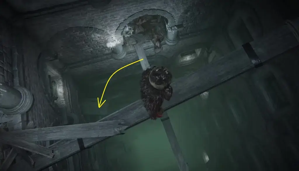 여기서 아래 그림과 같이 아래로 우물이 보입니다. 우물로 이동한 다음 우물 내부로 내려가 지하 지역으로 이동합니다.