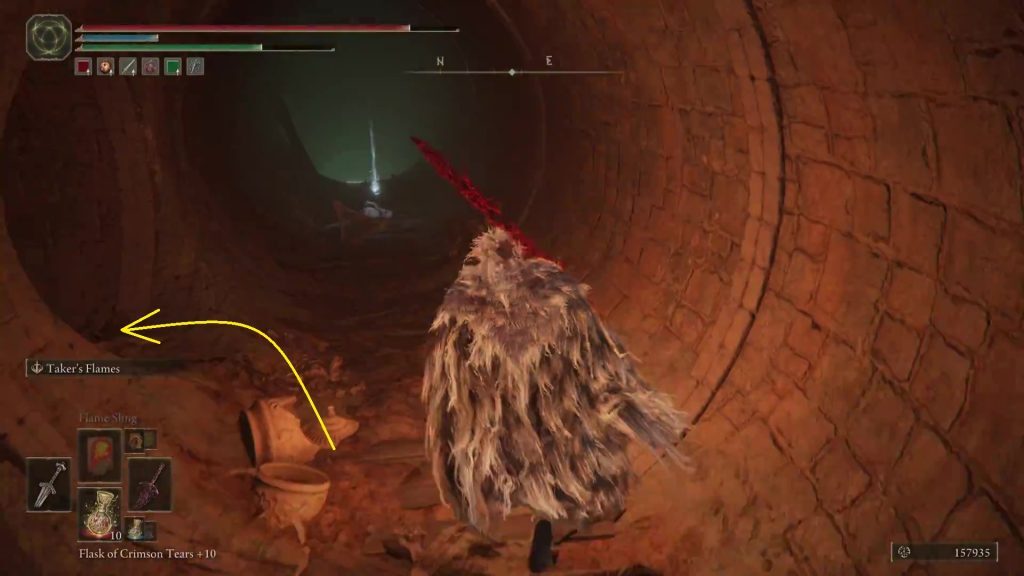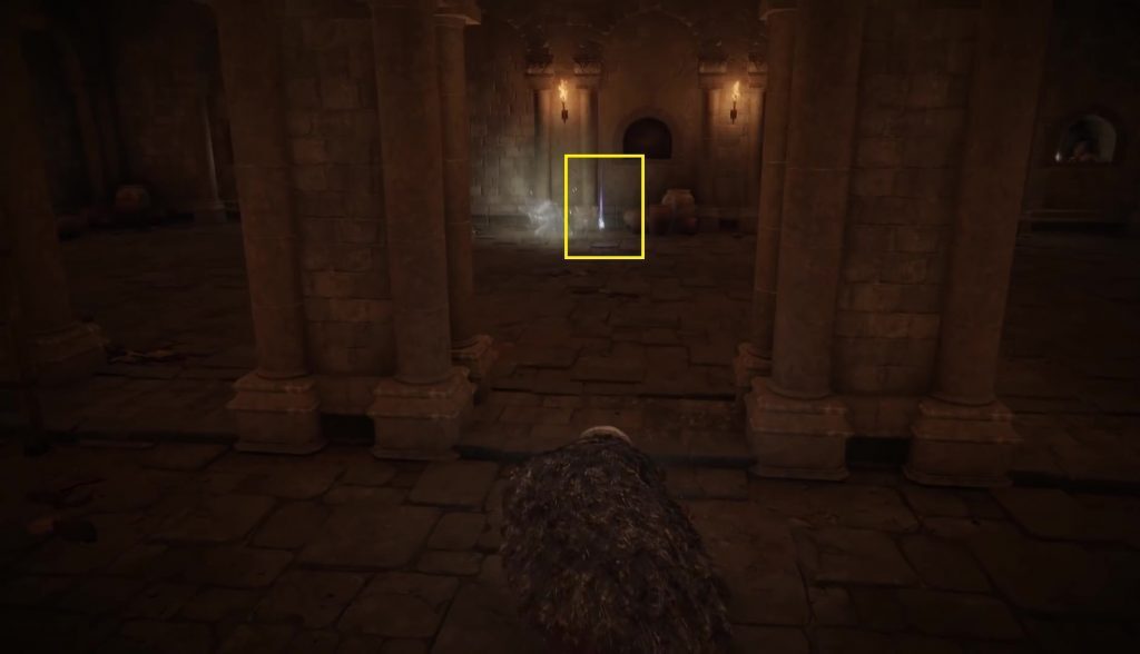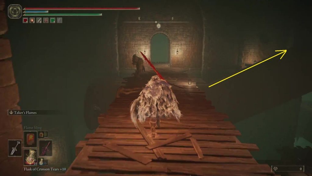 게이트를 열고 선형 경로로 진행합니다. 잠시 후 큰 홀에 도착합니다. 이 홀의 왼쪽에는 은혜의 지하도로변 부지가 있는 작은 방이 있습니다. 이 홀의 왼쪽 모서리 근처에 아래와 같이 드롭다운할 수 있는 작은 구멍이 있습니다.