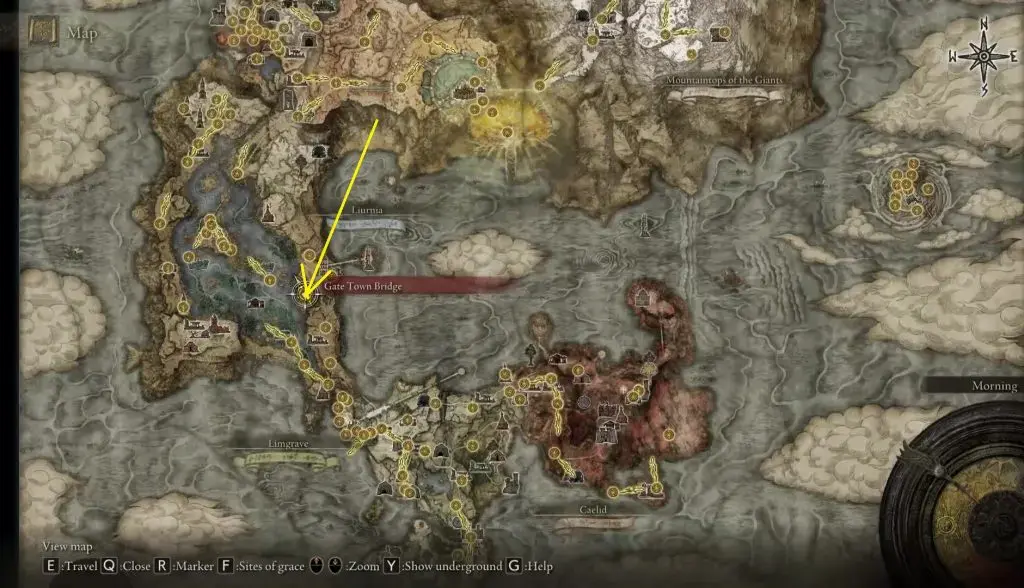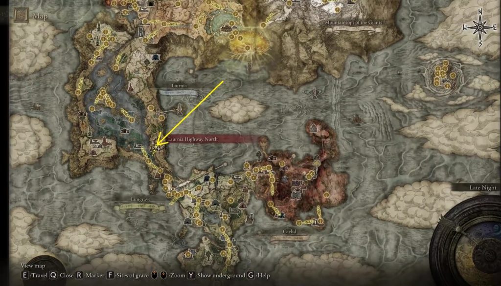 Festering Fingerprint Vyke가 지문 포도 를 떨어뜨립니다. 아래 사진에 표시된 위치에서 그를 찾을 수 있습니다. 표시된 위치에 도달하려면 Dectus의 그랜드 리프트에서 남쪽으로 이동하여 Frenzied Flame Village 에 도달 하십시오. 거기에서 북서쪽으로 이동하여 표시된 위치에 도달하십시오. 거기에 도달하면 Festering Fingerprint Vyke가 침입합니다. 그를 죽이면 지문 포도를 얻을 수 있습니다.
