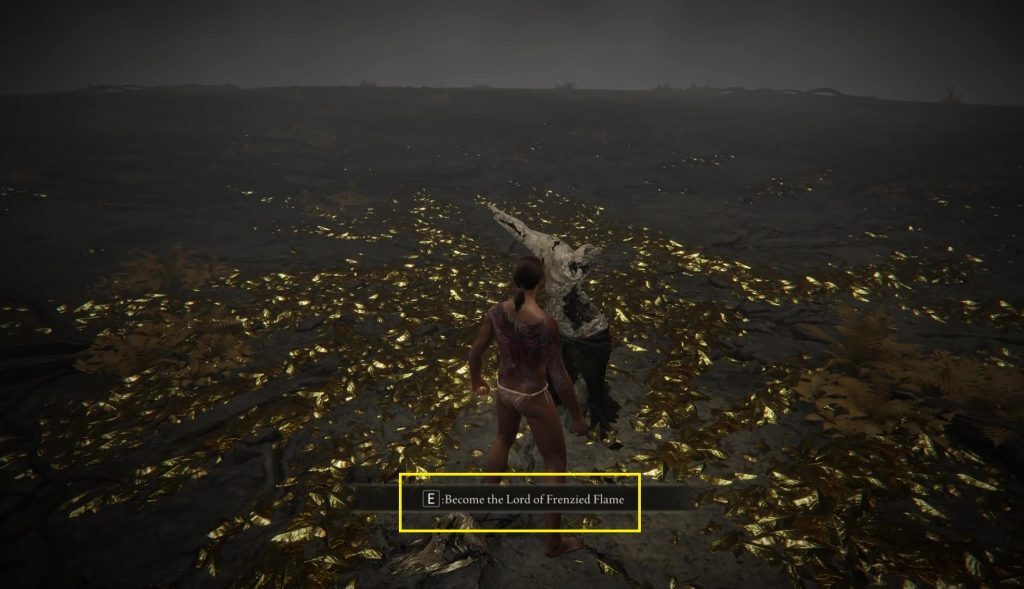 모든 무기, 갑옷 및 아이템을 해제하십시오. 그러면 아래 그림과 같이 앞으로 문이 상호 작용할 것입니다. 컷신이 끝나면 Frenzied Flame의 낙인이 찍힙니다.