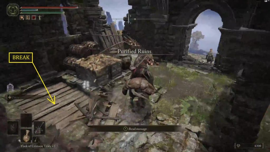 정화된 폐허 에 들어가 아래 그림과 같이 나무 판자를 부수십시오. 그러면 숨겨진 경로가 나타납니다. 계단을 내려가 아래 방에서 샤브리 포도를 모으세요.