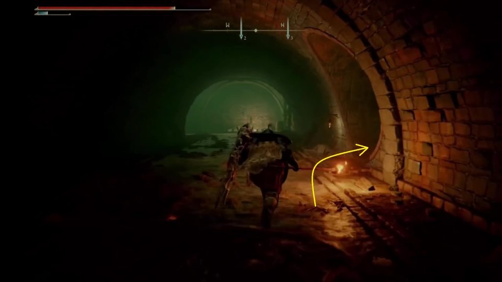 이제 아래쪽 방향으로 계속 진행합니다. 파이프가 끝나면 사다리를 내려오십시오. 그런 다음 우회전하여 엘리베이터를 타고 낮은 층으로 가십시오. 여기에서 은혜의 장소를 찾을 수 있습니다. 계속 직진 하여 Omen 보스 은신처에 도달하십시오. 보스를 물리친 후 아래와 같이 제단을 치세요. 이렇게 하면 제단이 내려와 숨겨진 길이 나타납니다.