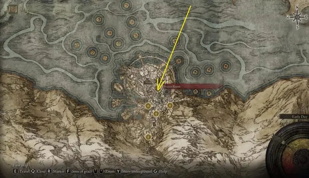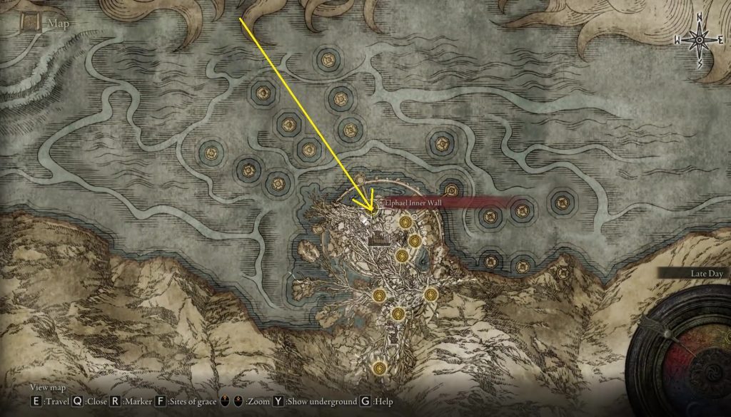 아래 그림과 같이 Haligtree 의 Elphael Inner Wall 로 가십시오.