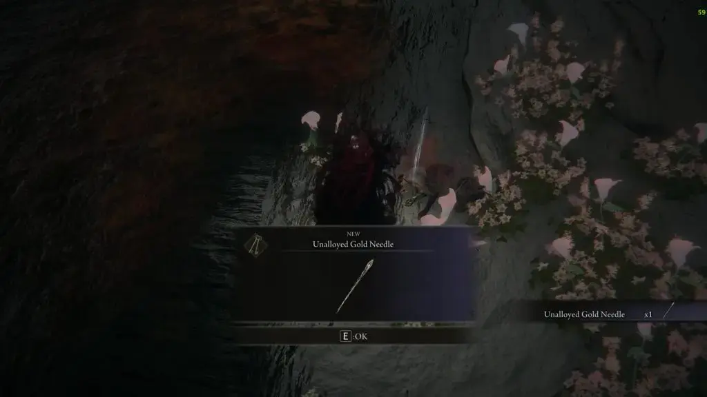 Haligtree에서 계속 진행하여 Haligtree Roots로 가십시오. 계단을 내려가 보스의 은신처에 도달하고 말레니아 보스를 처치하세요. 그녀가 패배하면 보스 지역에 꽃이 나타납니다. 꽃 근처로 가서 무 합금 바늘 을 돌려주면 아래 사진과 같이 미켈라의 바늘 을 얻을 수 있습니다.
