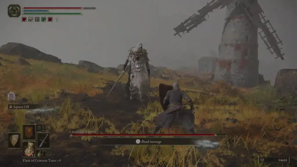 아래와 같이 그늘진 성 동쪽에 있는 풍차마을로 이동 합니다. 그곳에서 Godskin Apostle 보스를 처치하십시오.
