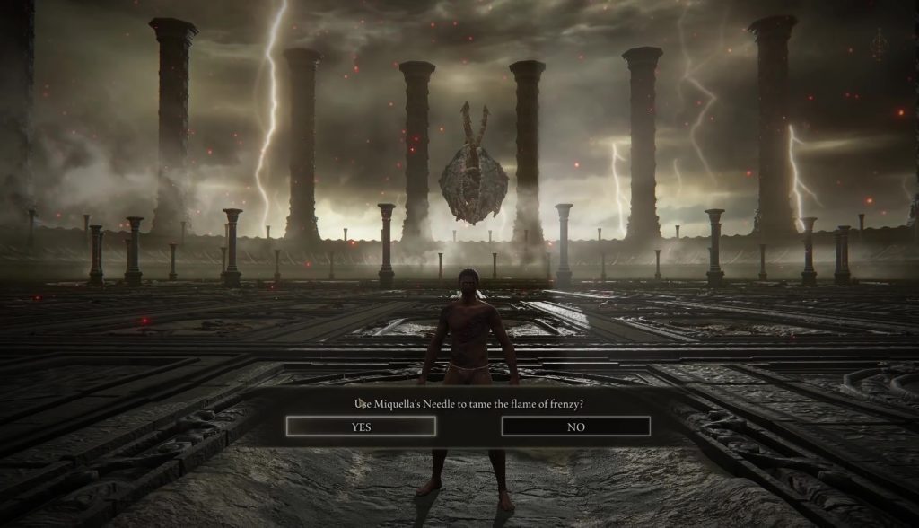 용군주 플라시두삭스의 방 에서 미켈 라의 바늘 을 사용하십시오 . 그를 물리칠 필요는 없습니다. 인벤토리를 열고 바늘을 사용하여 광란의 명성을 길들이기만 하면 됩니다. 이제 게임을 정상적으로 종료할 수 있으며 나쁜 결말을 얻지 못할 것입니다.