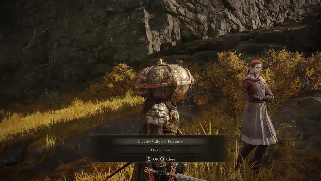 Erdtree Gazing Hill에 있는 Millicent에게 돌아가 그녀에게 Valkyrie의 의족을 주십시오.