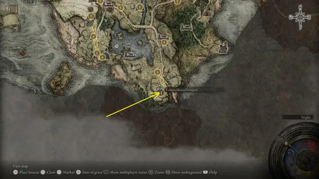 아래와 같이 림그레이브 남쪽 부분에 있는 Forlorn Hound Evergaol 로 이동 합니다.