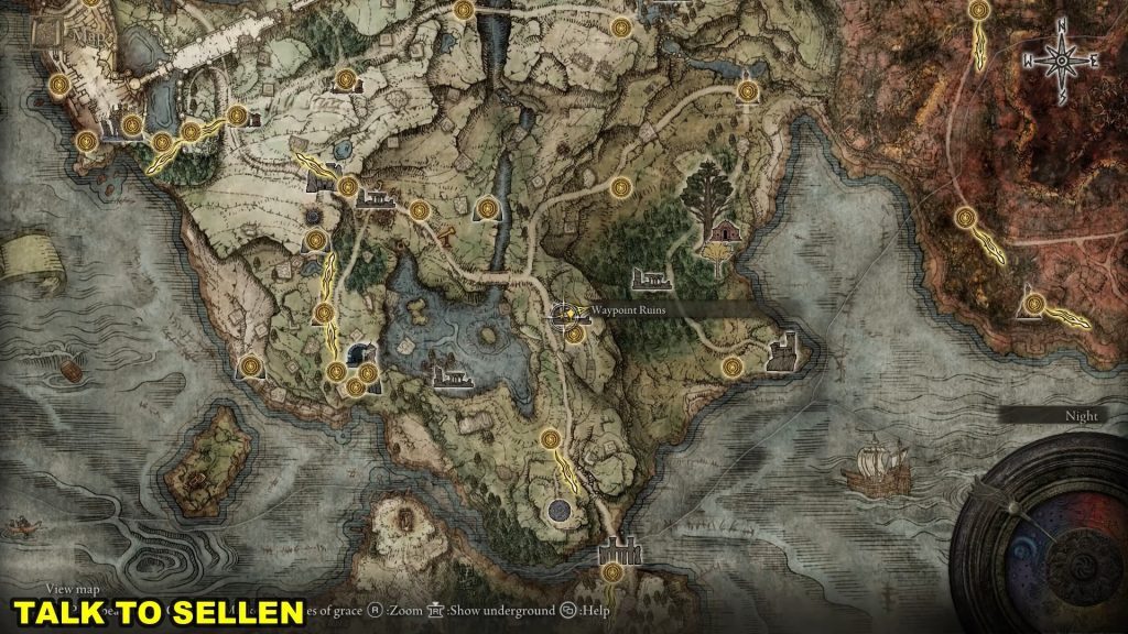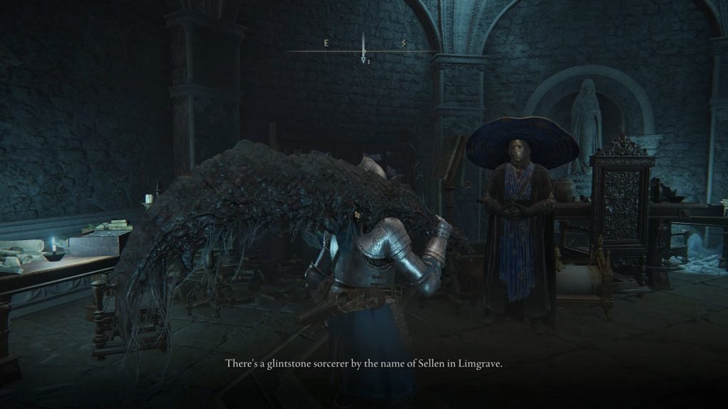 아래 그림과 같이 셀루비스의 라이즈 건물로 이동하여 셀루비스와 대화하세요. 그는 당신에게 Limgrave에 있는 Sellen과 대화하라고 말할 것입니다.