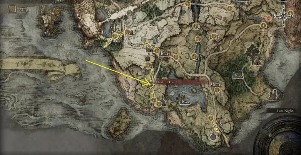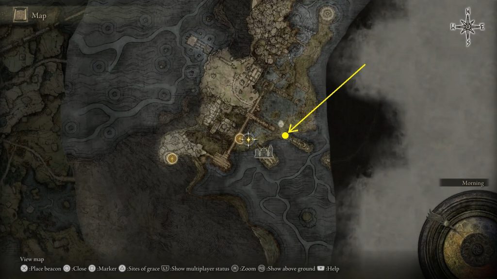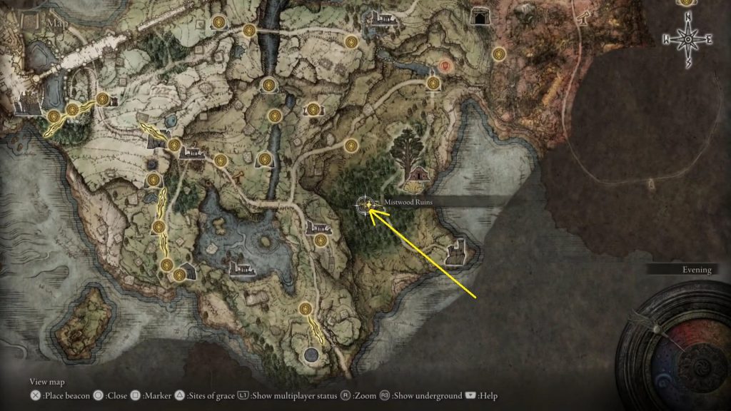 퀘스트를 시작하려면 먼저 아래와 같이 Limgrave East의 Mistwood Ruins를 방문해야 합니다.