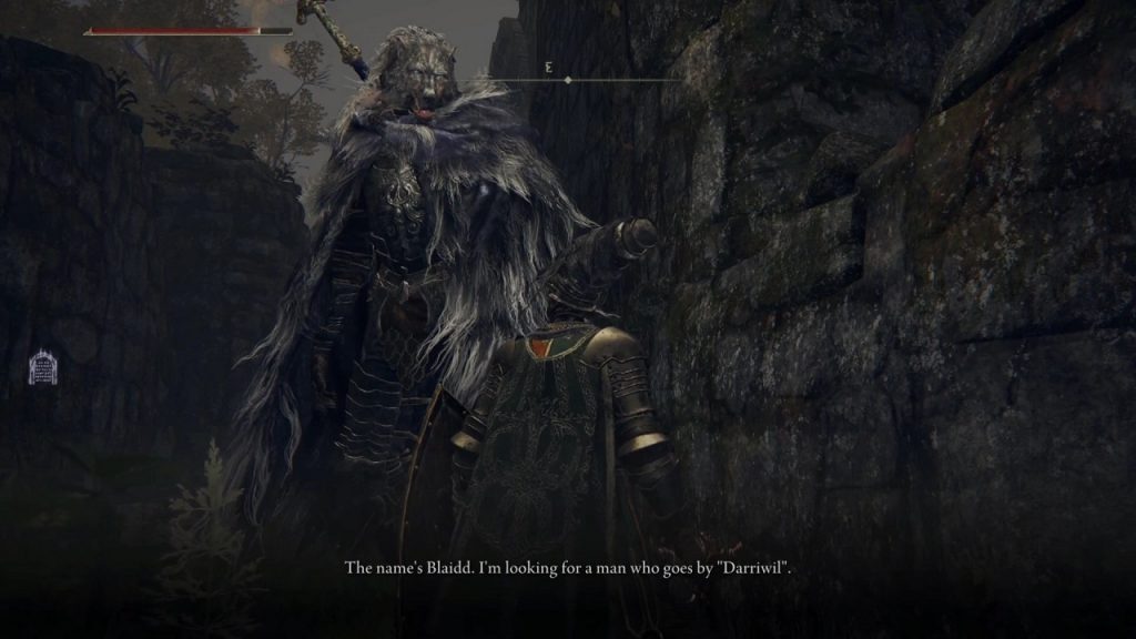 Mistwood Ruins 로 돌아가십시오 . 짖는 소리에 주의하십시오. 하울링이 들리면 아래 그림과 같이 Finger Snap 기호를 사용하십시오. 그러면 Blaidd 라는 늑대가 나타납니다. 그는 Mistwood Ruins 의 북쪽 입구에 있을 것입니다 . 그에게 말을 걸면 그가 " 다리윌 " 이라는 사람을 찾고 있다고 말할 것입니다 .