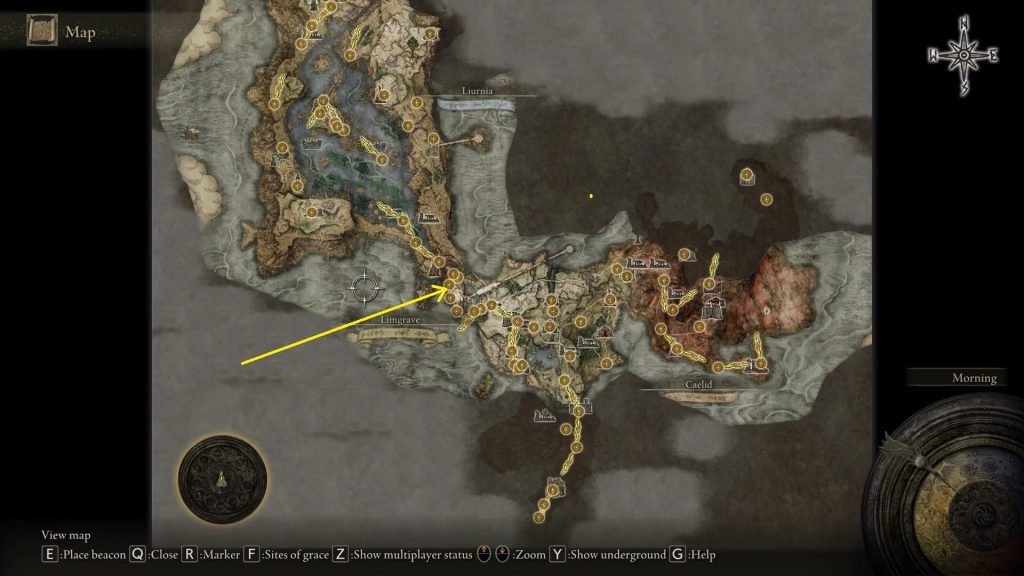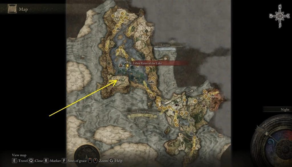 Stormveil Castle에서 Gogrick Boss를 죽이지 않았다면 Nepheli 는 Stormveil Castle의 우리 안에 아래 사진에 표시된 위치에 있을 것입니다.