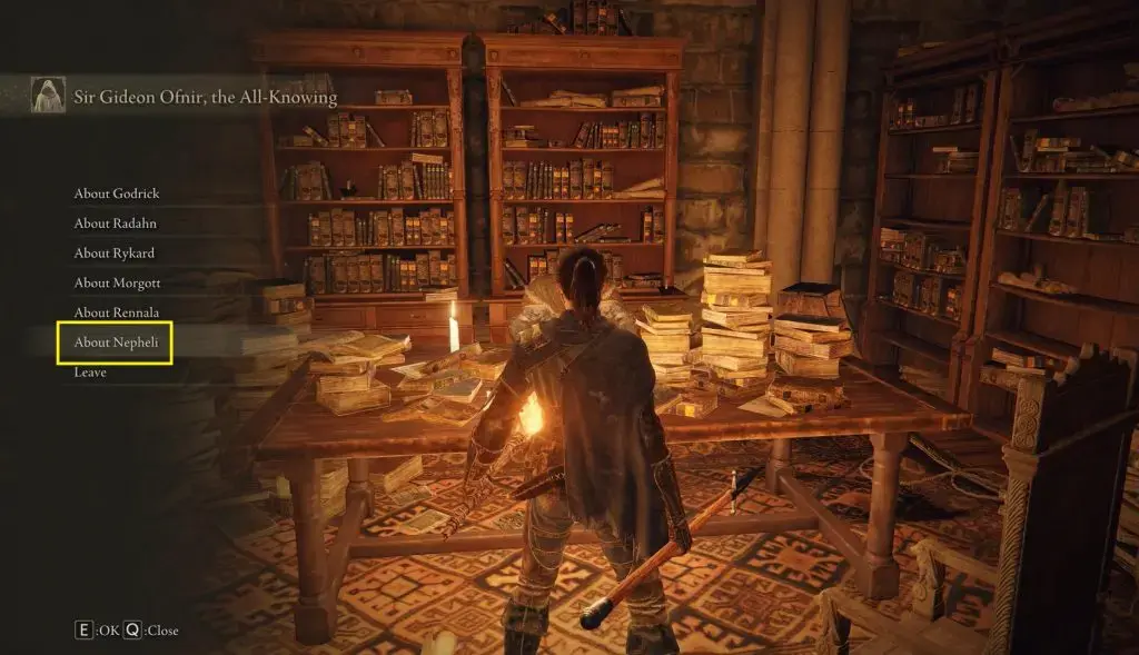 참고: Nepheli는 Roundtable Hold 에서 그녀의 아버지(Sir Gideon Ofnir)와 대화할 때까지 나타나지 않습니다 .