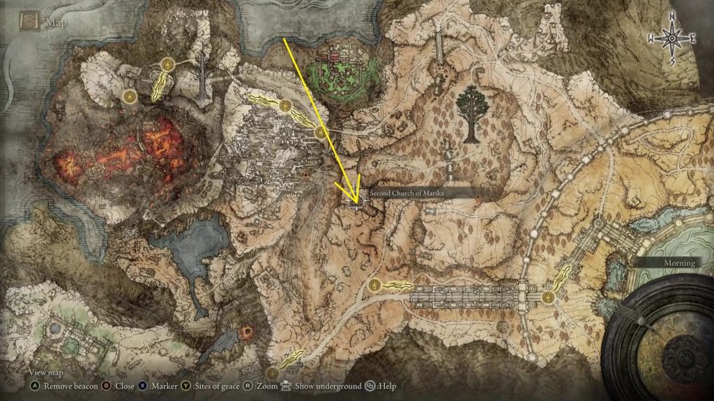 Altus Plateau 에 있는 두 번째 마리카 교회로 이동합니다 ( Dectus의 Grand Lift를 이용하여 Altus Plateau 에 도달 합니다 ).