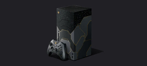 "Xbox Series X Halo Infinite 리미티드 에디션 '은 액션 슈팅 「Halo」시리즈 20 주년 기념 특별 디자인이 새겨진 오리지널 디자인의 Xbox Series X. 블랙을 기반으로 독창적 인 디자인이 새겨 져있어 정면 상단의 로고도 금색되었다. 제공된 컨트롤러도 본체 디자인과 매치하는 디자인으로되어있다.