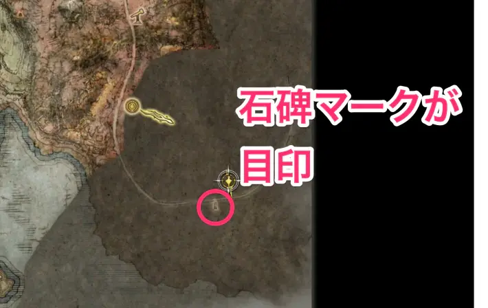지도 미해방 지역을 잘 보면 희미하게 길과 아이콘을 확인할 수 있는 곳이 있다. 비석 마크의 장소에 지도의 단편이 떨어지고 있으므로, 비석 마크를 표식으로 하고 그 장소로 향한다.