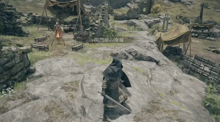 림그레이브의 첫 축복인 '표착묘지'에서 북쪽으로 길을 가면 부딪치는 T자로에 '관문 앞의 폐허'라는 지역이 있다. 여기에지도 조각을 얻을 수있는 기둥이 있습니다. 주변에는 적이 몇체 있기 때문에, 조심하면서 진행하자.