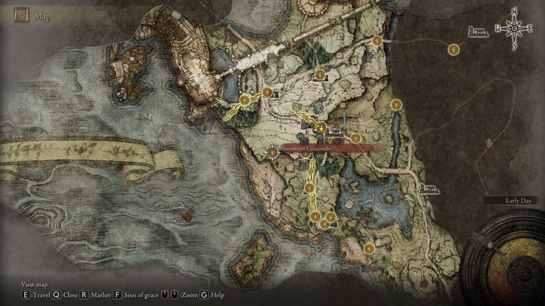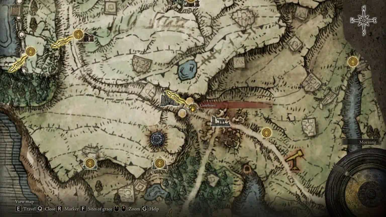 다른 게임과 달리 Elden Ring에서는 처음부터 지도에 액세스할 수 있습니다. 그것에 대한 세부 사항은 "잠겨"있을 것입니다. 주요 도로만 볼 수 있으며 관심 지점은 발견할 때 표시됩니다. 거의 아무것도 없습니다.