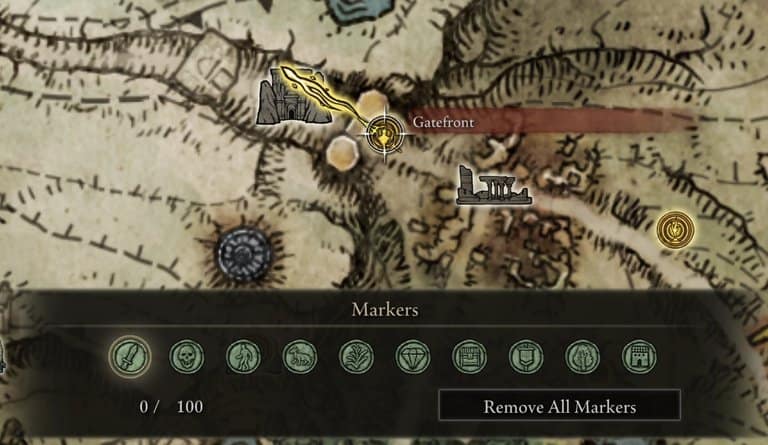 지도는 훌륭한 세부 사항과 흥미로운 힌트를 보여줍니다. 마커 시스템을 사용하여 나중에 체크아웃하고 싶거나 이미 체크아웃했지만 다시 방문해야 하는 항목에 대해 추가 메모를 추가할 수 있습니다. Elden Ring의 퀘스트 시스템은 메모장이나 저널이 없다는 점에서 Souls 게임의 전형입니다. 마커를 사용하여 해야 할 일과 장소를 상기시킬 수 있습니다. 예를 들어, 방금 발견한 공급업체나 나중에 패배하기 위해 돌아와야 하는 새로운 보스에 대한 마커를 배치합니다.