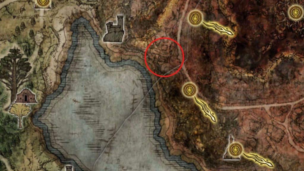 Meteoric Ore Blade는 Caelid Waypoint Ruins 에 있습니다. 거기에 가려면 아래에 설명된 지침을 따르십시오.