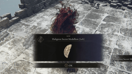- 훨씬 후에 당신은 자이언츠의 산꼭대기에 도착할 것입니다. 이 구역의 북쪽 구역인 Castle Sol로 이동하면 보스를 처치한 후 Haligtree Secret Medallion(왼쪽)을 찾을 수 있습니다.