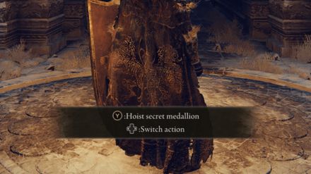 - 거인의 산꼭대기에 입장한 Rold의 Grand Lift로 돌아가서 메달을 활성화하기 위해 이동하지만 아직 활성화하지는 마십시오. 메달리온 사용 옵션이 표시되면 "메달리온(비밀) 사용" 옵션이 표시될 때까지 왼쪽 또는 오른쪽을 클릭하고 해당 항목을 선택합니다.