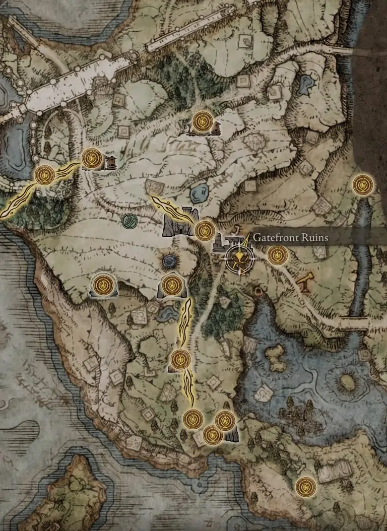 아이템은 게임 시작 시 가까운 Gatefront Ruins 지하에 있습니다. 가장 가까운 Lost Graces는 Agheel Lake North, Gatefront 및 Groveside Cave입니다.