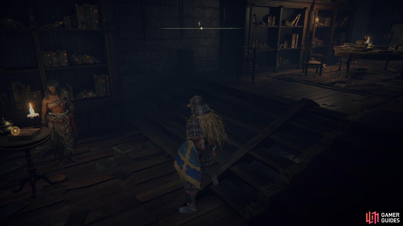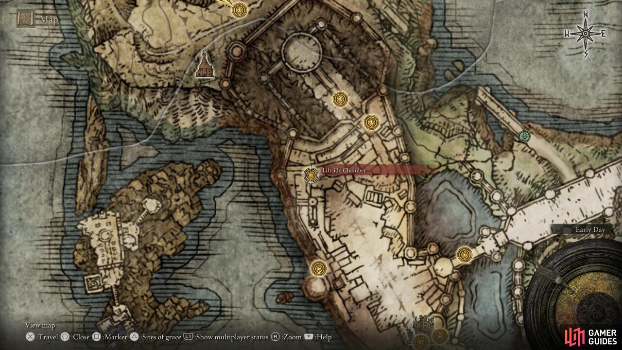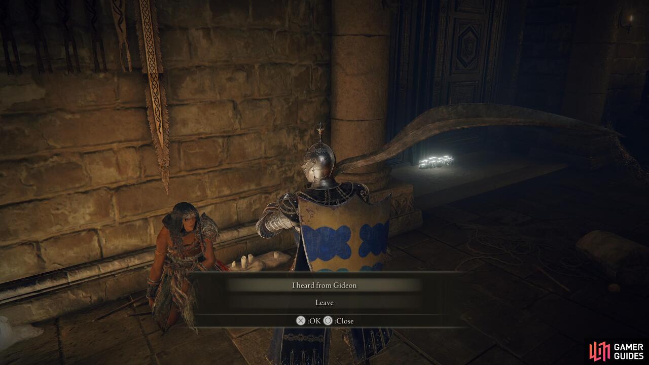 기드온과 대화한 후 네펠리에게 말을 걸면 기드온에 대한 소식을 들었다고 말할 수 있습니다. 그녀는 기드온이 저지르기 시작했고 더 이상 무엇을 믿어야 할지 모르겠다고 당신에게 알려줄 것입니다. 이 시점에서, 당신은 게임을 시작한 기대의 예배당으로 향해야 합니다. 동쪽 텔레포트를 타고 북서쪽 Liurnia에 있는 Four Belfries를 통해 액세스할 수 있습니다. 필요한 Imbued Key는 근처 상자에서 찾을 수 있습니다.