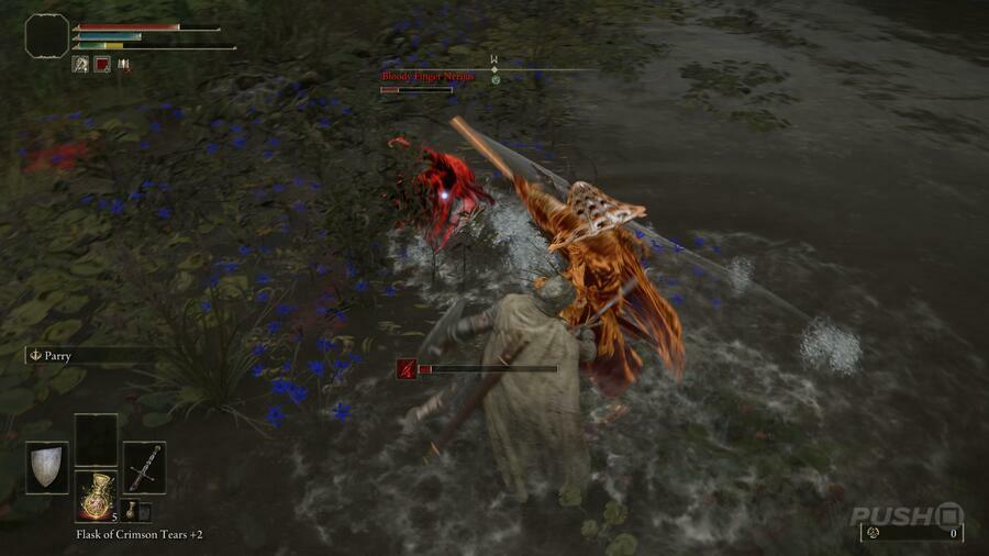 다음으로 머크워터 동굴 로 이동합니다 . 이 위치에 도착하면 블러디 핑거 네리주스 의 침략을 받습니다 . 그를 처치하면 Reduvia 를 얻을 수 있습니다 . 이 단검은 Str E, Dex D 및 Arc D 스케일링이 있으며 Str 5, Dex 13 및 Arc 13이 필요합니다. Reduvia Blood Blade 스킬을 제공하고 패시브 혈액 손실 축적 효과를 제공합니다. 이 적을 물리쳤으면 강을 따라 계속 북쪽으로 이동하십시오. 다시 한 번 유라를 만나실 수 있습니다. 그는 블러디 핑거를 사냥하고 있다고 설명할 것입니다.