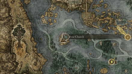 그가 처음 만났을 때, Varré는 은혜의 인도를 따르고, 처녀를 찾고, 원탁 회의에 초대를 받는 것에 대한 힌트를 줍니다. 그러나 플레이어가 Stormveil Castle을 완료하고 그곳에서 Godrick을 물리친 후 White-Faced Varré는 Liurnia Lake의 섬에 있는 황폐한 교회인 Rose Church로 이동하고 Tarnished에게 완료해야 할 불길한 퀘스트를 줍니다. 섬은 Raya Lucaria Academy의 남쪽과 Academy Gate Town의 서쪽에 있습니다. 교회의 첨탑을 찾으십시오.