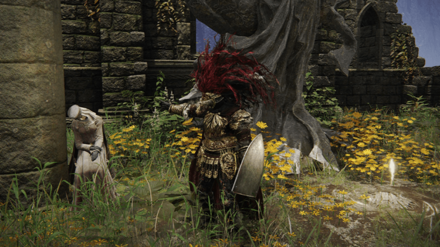 Fringefolk Hero's Grave 에서 Limgrave 로 나갈 때 보이는 The First Step Site of Grace 옆에 White-Faced Varre가 서 있을 것입니다 .