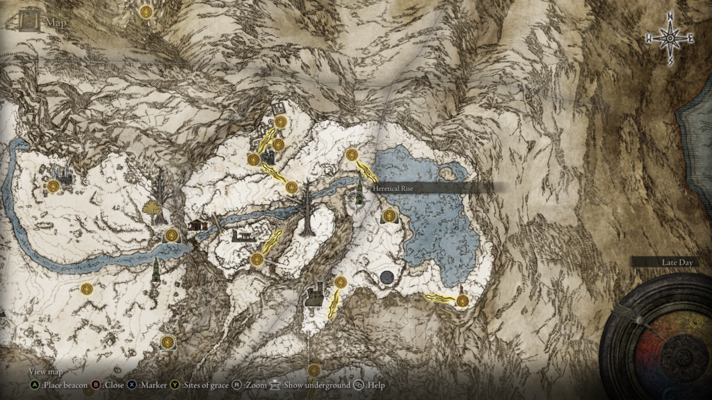 고원에서 마법 주문은 남서쪽 모서리에 있는 Chelona's Rise 에 있습니다. 타워는 잠겨 있으며 세 마리의 유령 거북이를 찾아야 합니다. 하나는 타워 바로 북쪽의 절벽에 있습니다. 그것을 치려면 활이 필요합니다. 다른 하나는 남동쪽 모퉁이의 절벽 아래 난간에 있습니다. 마지막은 북서쪽 모퉁이에 있는 Evergaol 근처의 돌풍 위를 날고 있습니다. 당신의 마운트와 함께 바람을 타고 그것을 치십시오.