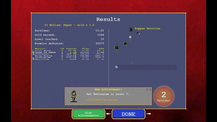 Christine은 상당히 간단한 잠금 해제입니다. 게임의 성과는 당신이 해야 할 일에 대한 힌트를 제공합니다. Christine을 잠금 해제하려면 Pentagram의 레벨을 7 이상으로 올려야 합니다. 런에서 이 작업을 수행한 후에는 런을 끝내거나 완료하십시오. 결과 화면에 Christine을 잠금 해제했다는 메시지가 표시됩니다(위의 스크린샷과 같이).