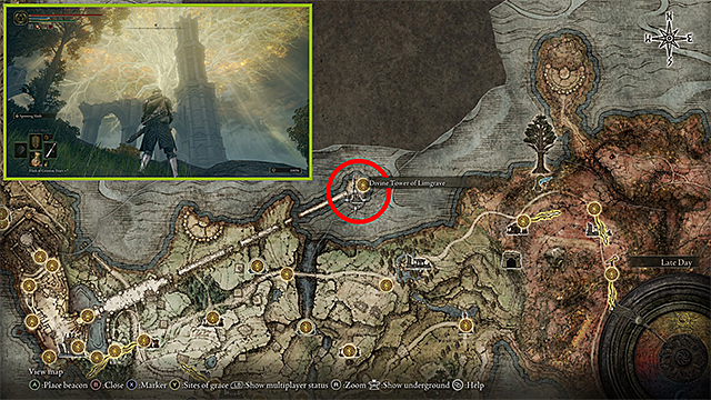 Godrick의 열쇠가 된 Limgrave Divine Tower는 Stormveil에서 동쪽으로 이어지는 다리 건너편에 있습니다.