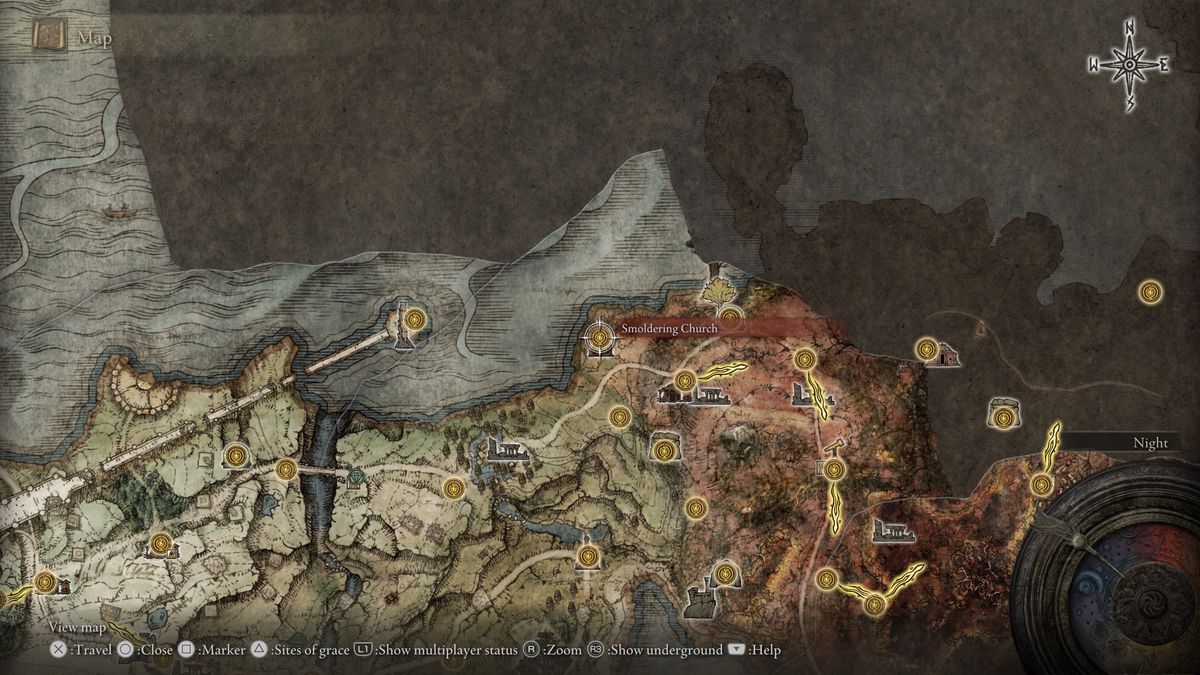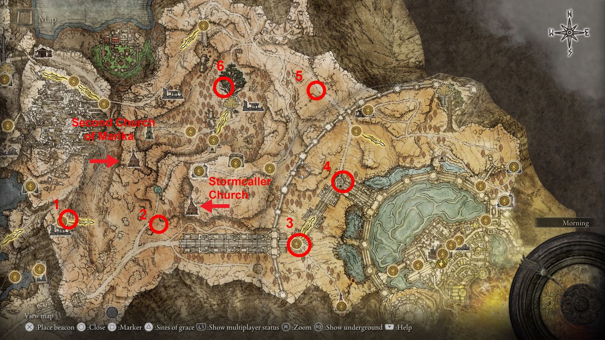 - Minor Erdtree 근처(웜페이스의 적을 조심하세요)