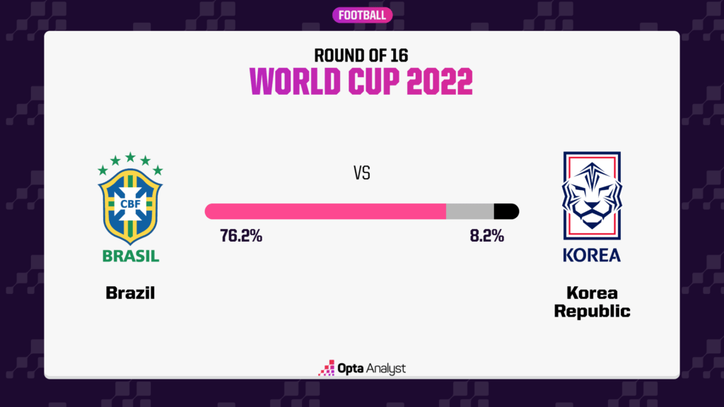 예상대로 브라질은 이것에 대한 엄청난 선호도입니다. 월드컵 예측으로 유명한 우리의 슈퍼컴퓨터는 8강 진출 확률을 76.2%로 제시합니다.