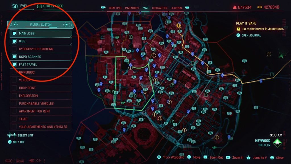 일반적으로 어수선한 맵에서 모든 것을 찾는 것이 어려울 수 있으므로 부업 및 공연만 표시하도록 맵을 필터링하는 방법은 다음과 같습니다.