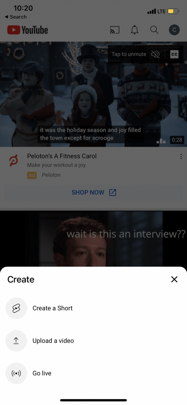 - 동영상을 게시하려면 짧은 업로드 를 탭 하세요.