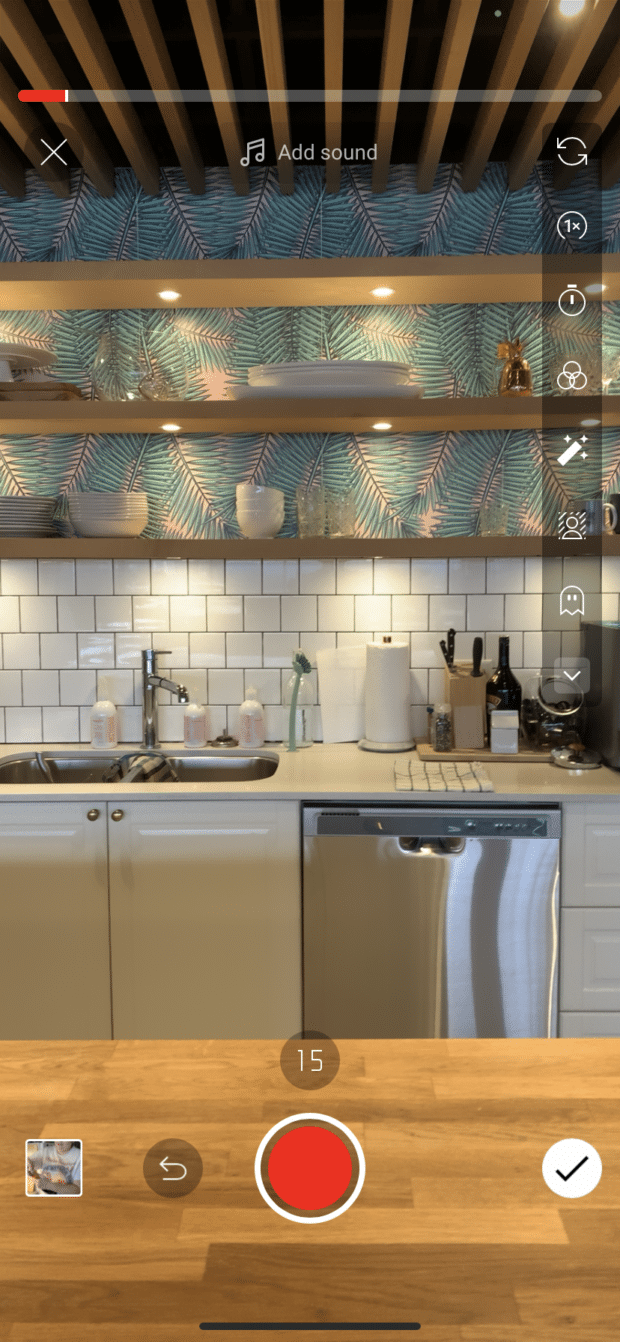 - 녹화가 끝나면 체크 표시 를 탭하여 Shorts 동영상 을 저장하세요.