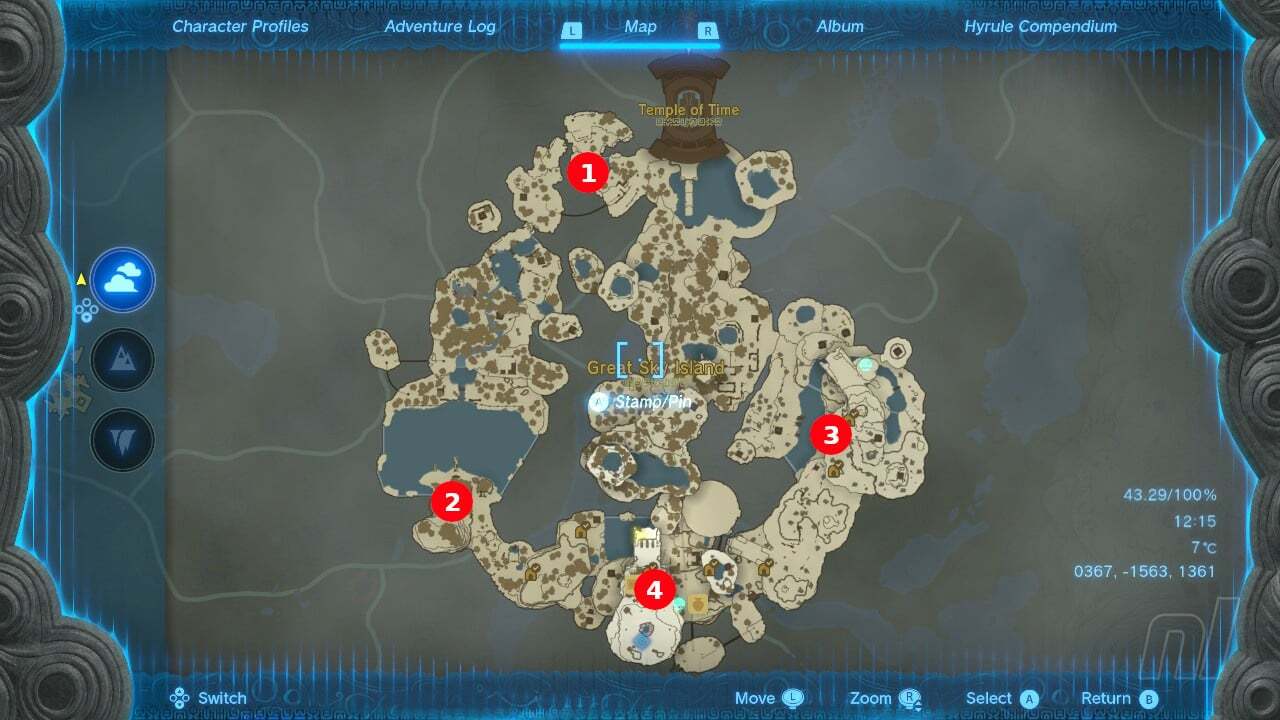 152개의 사당이 있으면 마지막 사당 끝에 사이드 퀘스트인 사당 탐험가가 주어집니다 . Great Sky Island 의 시간의 사원 으로 이동하여 여신상 방으로 돌아갑니다.