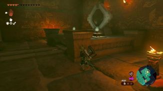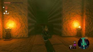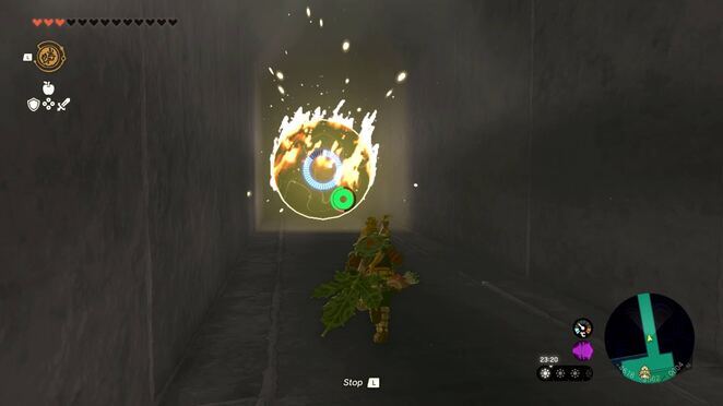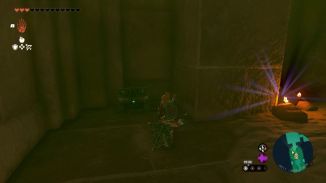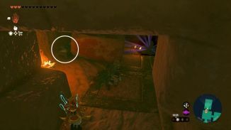 다리 끝에 있는 방에서 오른쪽에 화염 제트와 한 쌍의 Gibdos가 있는 복도를 볼 수 있습니다. 그 방향으로 모험을 떠나기 전에 Ultrahand를 사용하여 앞쪽 벽에서 느슨한 블록을 빼내십시오. 안으로 들어가 기브도, 오팔 , 토파즈 가 든 보물 상자를 찾으세요 .
