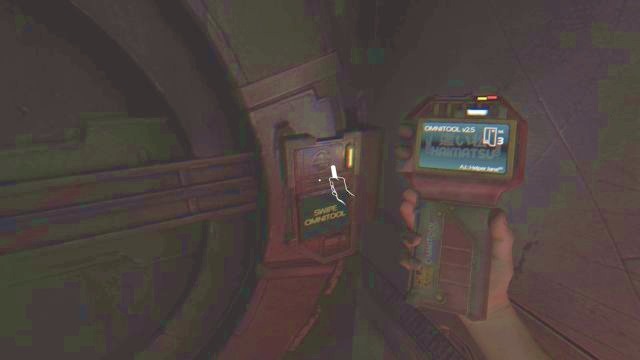 Omnitool을 넣은 슬롯의 왼쪽에는 이제 열려 있어야 하는 보관함이 있습니다. 보관함에는 Omnitool에 대한 일종의 확장 카드인 Tool Chip이 있습니다. 상호 작용하여 그 중 하나(하나만 획득 가능)를 선택한 다음(다시 상호 작용하여) Omnitool에 놓습니다. 터미널로 돌아가서 "도구 칩 관리" 옵션을 선택한 다음 "업데이트" 버튼을 누릅니다. 몇 초 후에 Omnitool이 향상되고 터미널에서 꺼내야 합니다.