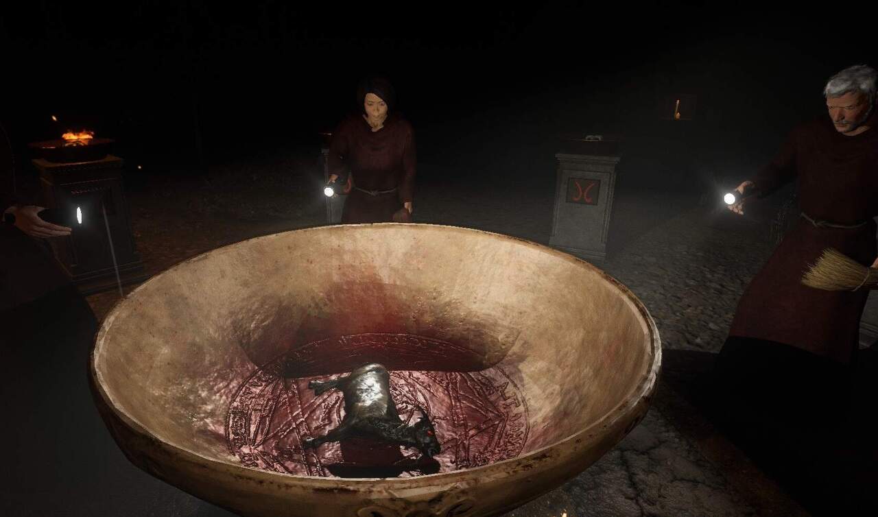 당신의 임무는 염소를 한 마리씩 잡아서 방금 불을 붙인 제단에 제물로 바치는 것입니다. 하지만 그냥 잡을 수는 없습니다. 집 밖에서 건초 조각을 찾을 수 있습니다. 당신과 당신의 팀은 일부를 잡아 집 입구에 놓아야 합니다. 모든 사람은 또한 이 지역에도 비축해야 하는 medkits를 주시해야 합니다. 이것은 염소를 태우기 전에 해야 합니다. 또한 제단에 있는 동안 제단 옆에 가스 캔을 비축하고 싶을 것입니다. 나중에 검색하는 대신 염소를 더 태울 수 있도록 준비되어 있을 수도 있습니다.