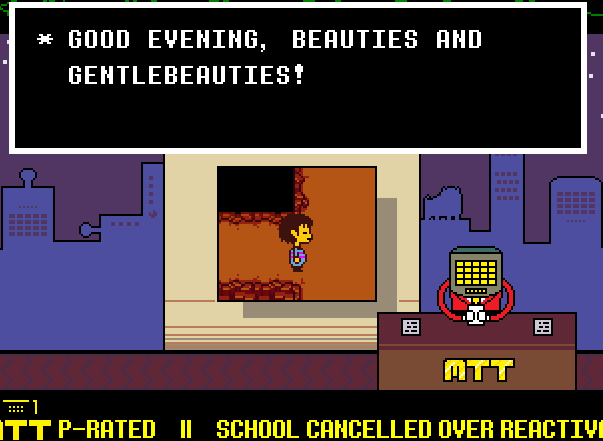 준비되면 문으로 들어갑니다. 메타톤이 안에서 여러분을 기다리고 있습니다. 이것이 그와의 마지막 대결이다. 그는 Alphys가 그녀가 당신의 모험의 일부가 될 수 있음을 보여주기 위해 이 모든 뻔한 이야기를 만들었다고 설명합니다. Metaton은 그것에 지쳤고 자신이 당신의 영혼을 스스로 가져갈 수 있음을 보여주고 싶어합니다. 그는 Alphys를 가두고 두 사람만 대결하게 합니다.