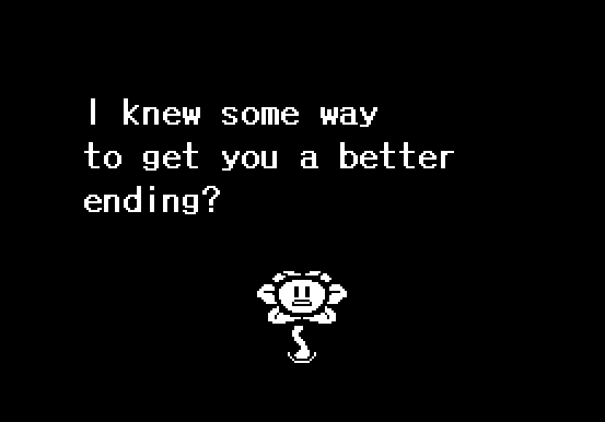 그러나 이것은 좋은 결말이 아닙니다. 그렇지 않습니까? Flowey가 당신에게 그것에 대해 이야기하기 위해 나타날 것입니다. 몬스터를 전혀 돕지 않은 것 같습니다. 사실, 당신은 그들을 다시 설정하고 아마도 오랜 시간 동안 갇혀 있습니다. 확실히 더 나은 결말이 있습니까? Flowey가 엔딩에 대한 조언을 해 줄 것입니다. 그는 당신이 그 엔딩을 추구할 수 있도록 당신이 이전 세이브 파일을 로드할 수 있도록 할 것입니다. 이 가이드를 따랐다면 그는 Alphys와 친구가 되라고 제안할 것입니다. 아무도 죽이지 않았고 더 나은 결말을 원한다면 아래의 다음 섹션을 따르십시오. 누군가를 죽였다면 게임을 다시 시작해야 합니다.