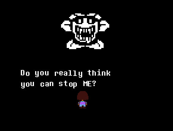 파피루스는 요리를 하러 온 것이 아니라 Undyne이 대신 요리를 해줄 것입니다. 부드럽게 요리하거나 Undyne처럼 거칠게 요리할 수 있지만 무슨 일이 일어나는지는 중요하지 않습니다. 야채에 대한 그녀의 지시를 따르고 파스타를 냄비에 넣으십시오. Z를 눌러 냄비를 저은 다음 오른쪽을 길게 눌러 열을 높입니다. 전체가 불타버릴 때까지 계속 잡고 있어! 그러면 Undyne이 다시 당신에게 도전하여 당신을 만남으로 이끌 것입니다. 걱정하지 마세요, 당신은 싸울 필요가 없습니다! Act 메뉴에서 Fake Hit를 사용하여 해를 끼치지 않는다는 것을 보여줍니다. Fight를 사용하더라도 실제로 그녀를 다치게 할 수는 없습니다.